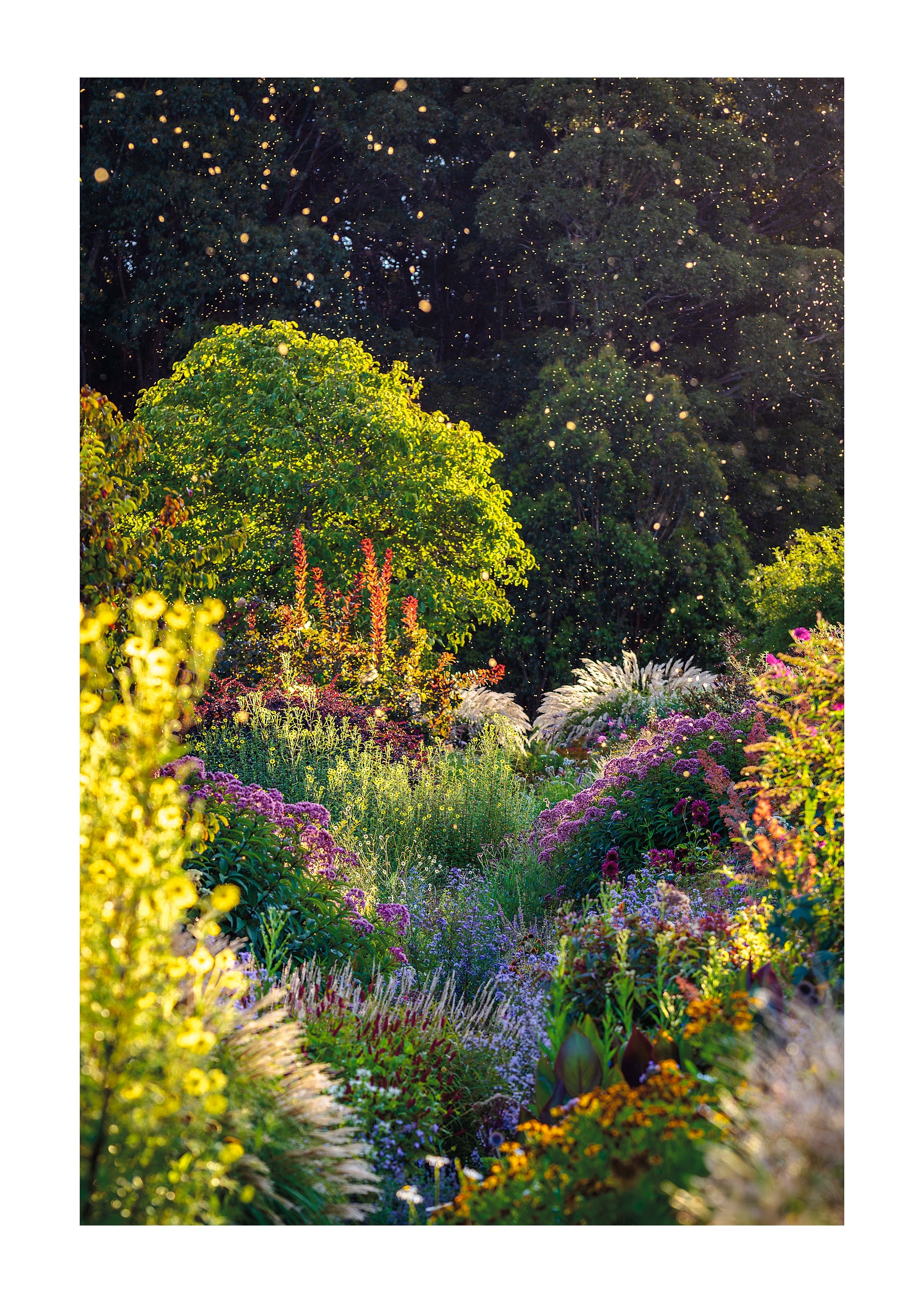 I was standing on a ladder, shooting into the light, when Sarah joined me. At that moment, there was a sudden explosion of insects, backlit by the setting sun - a phenomenon she had never witnessed in her garden before.